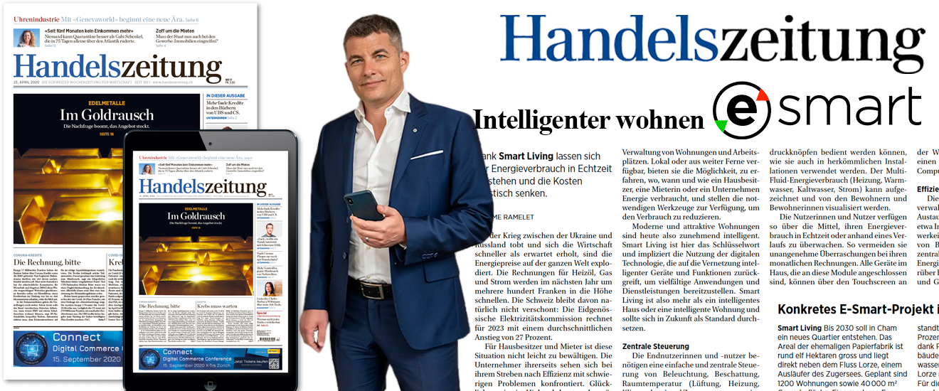 Die Handelszeitung ist die grösste Schweizer Wirtschaftszeitung.Die Zeitung richtet sich an wirtschaftsinteressierte Leser in der Deutschschweiz und genauer gesagt in dieser erweiterten Auflage, der neuen Technologien. Im folgenden Artikel stellt Jérôme Ramelet, Direktor für Verkauf, Marketing und Partner, fest, dass : „Sind die Energiepreise auf der ganzen Welt explodiert. Die Schweiz bleibt davon natürlich nicht verschont. Für Hausbesitzer und Mieter ist diese Situation nicht leicht zu bewältigen. Die Unternehmer ihrerseits sehen sich bei ihrem Streben nach Effizienz mit schwierigen Problemen konfrontiert. Moderne und attraktive Wohnungen sind heute also zunehmend intelligent. Smart Living ist hier das Schlüsselwort und impliziert die Nutzung der digitalen Technologie, die auf die Vernetzung intelligenter Geräte und Funktionen zurückgreift, um vielfältige Anwendungen und Dienstleistungen bereitzustellen. Smart Living ist also mehr als ein intel ligentes Haus oder eine intelligente Wohnung und sollte sich in Zukunft als Standard durchsetzen“.