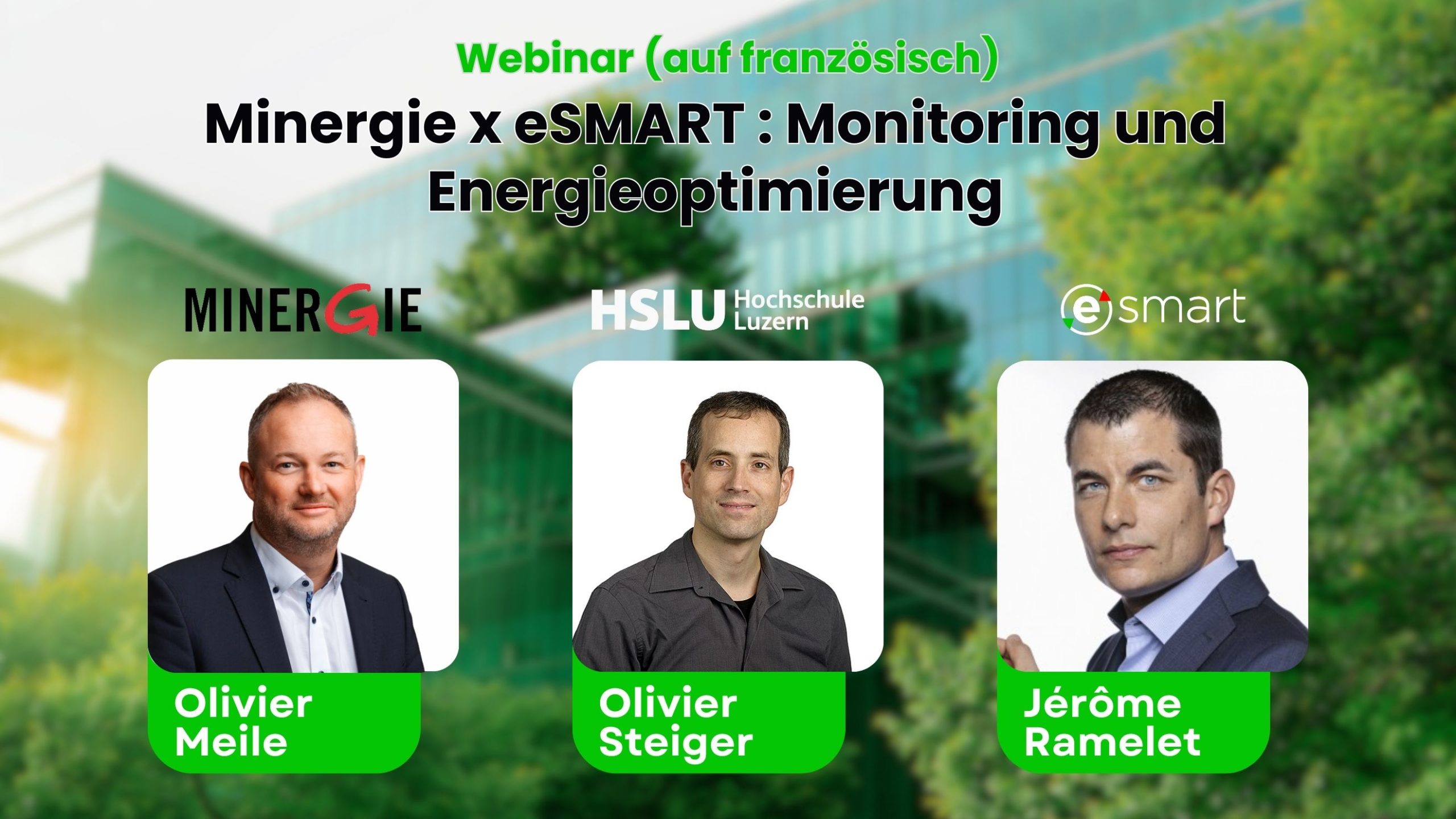 Wir freuen uns, Sie zu einem einzigartigen Webinar in Zusammenarbeit mit Minergie und der Hochschule Luzern (HSLU) über Energieoptimierung und Nachhaltigkeit im Immobilienbereich einladen zu können. Das Webinar findet am 23. Oktober von 12:00 bis 13:00 Uhr statt und bringt Experten aus der Branche zusammen, um die neuesten Innovationen im Bereich des intelligenten Energiemanagements und der Nachhaltigkeit in Gebäuden zu diskutieren.