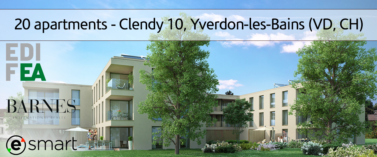 eSMART equips 20 apartments in two buildings of the Clendy X project in Yverdon-les-Bains, in a green and pleasant environment close to all amenities (bus, train station, shops and motorways). The project benefits from air/water heat pump heating with single-flow ventilation and photovoltaic panels on the roof. In terms of comfort, the apartments are equipped with electrically-controlled slatted blinds, as well as the eSMART system, which enables you to control the heating and electric blinds remotely, either by phone or tablet. You can also check your energy consumption and set the temperature in the various rooms to control your apartment remotely.