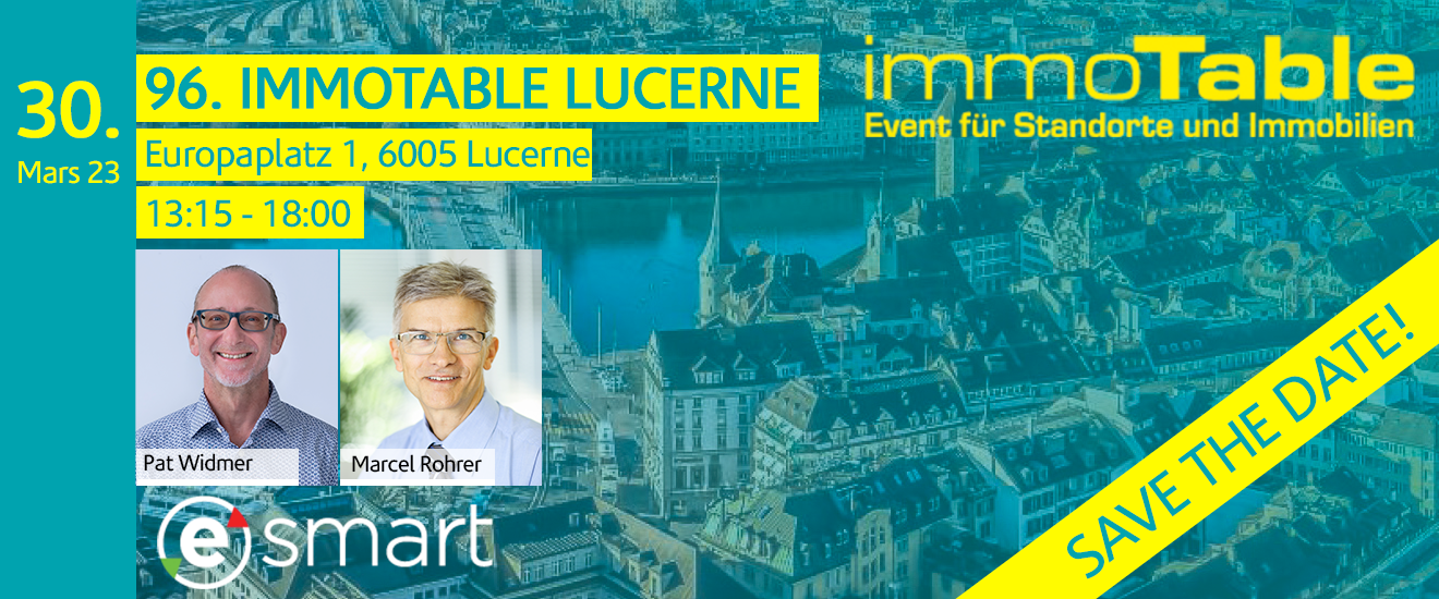 Venez rencontrer l’équipe eSMART avec Pat Widmer et Marcel Rohrer lors de la 96e immoTable, qui se tiendra le 30 mars prochain à Lucerne. A cette occasion, venez nous poser vos questions et assister à une démonstration de notre solution intelligente.