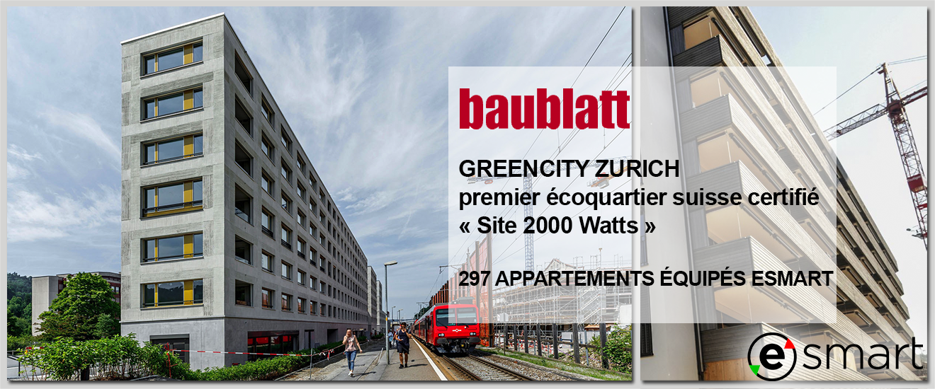L’une des applications de Greencity est « eSmart », un système de commande intelligent pour la gestion du bâtiment, basé sur une invention de l’EPF Lausanne, la technologie brevetée Power Line Carrier (PLC). Ce système a été développé par deux doctorants qui s’étaient fixé pour objectif de créer un moyen plus rentable et structurellement plus simple de contrôler automatiquement les bâtiments. Les systèmes disponibles à l’époque n’étaient guère abordables et ne pouvaient être installés que dans des bâtiments neufs. Les appartements disposent ainsi d’un contrôle en temps réel de la consommation d’énergie, d’un contrôle centralisé des systèmes électriques et d’un canal d’information pour la gérance.