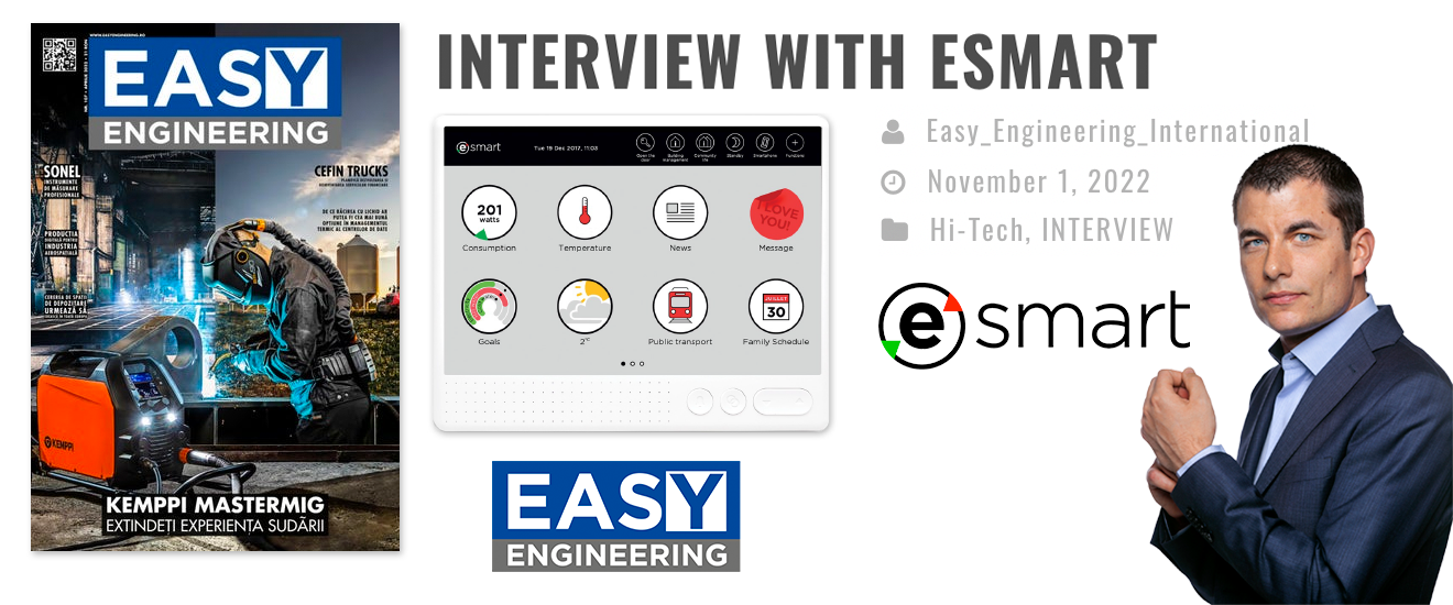 Dans un entretien du 1er Novembre 2022 pour le magazine Easy Engineering, Jérôme Ramelet présente la solution d’automatisation des bâtiments eSMART, disponible localement ou à distance, eSMART propose un tableau de bord connecté avec de nombreuses fonctionnalités parmi lesquelles on peut citer la possibilité pour les habitants de savoir où, quand, et comment ils consomment de l’énergie. Dans cet interview, Jérôme Ramelet présente les principaux avantages de la solution eSMART ainsi que les dernières tendances du marché.
