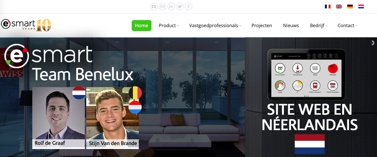 eSMART a commencé à installer sa solution sur différents projets tels que Abdijpoort aux Pays-Bas (22 appartements – Abdijpoort, Pays-Bas) mais également en Belgique (10 appartements – CRONOS, Belgique) et ambitionne d’équiper de plus en plus d’habitations de sa solution eSMART-building et ainsi poursuivre son développement aux Pays-Bas, en Belgique et au Luxembourg. Via un écran tactile dans le salon ou depuis l’application Smartphone, les fonctions du bâtiment telles que la vidéophonie, le chauffage, l’éclairage ou les stores peuvent être contrôlés de manière centralisée. L’écran affiche également la consommation d’électricité, de chauffage et d’eau chaude en temps réel, informant ainsi les occupants de leur consommation d’énergie. Un ensemble de fonctionnalités permettant un potentiel d’économies thermiques de 26 %.