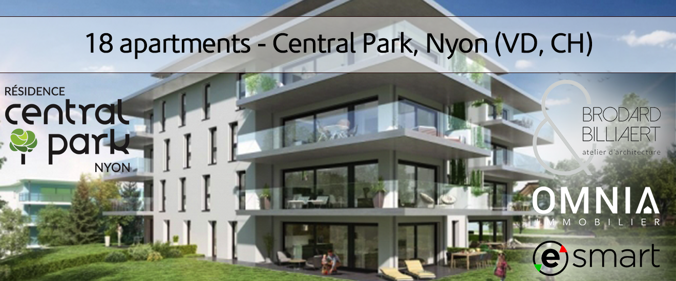 Central Park, nouveau projet immobilier de standing au cœur de Nyon, est composé de 18 appartements répartis sur 5 niveaux. Cet immeuble aux lignes épurées a été conçu par le bureau d’architectes Brodard et Billiaert. Alliant confort, espace et luminosité, les appartements offrent des surfaces habitables de 83 m2 à 132 m2 habitables auxquelles s’ajoutent des grands balcons ou terrasses de plus de 40 m2.