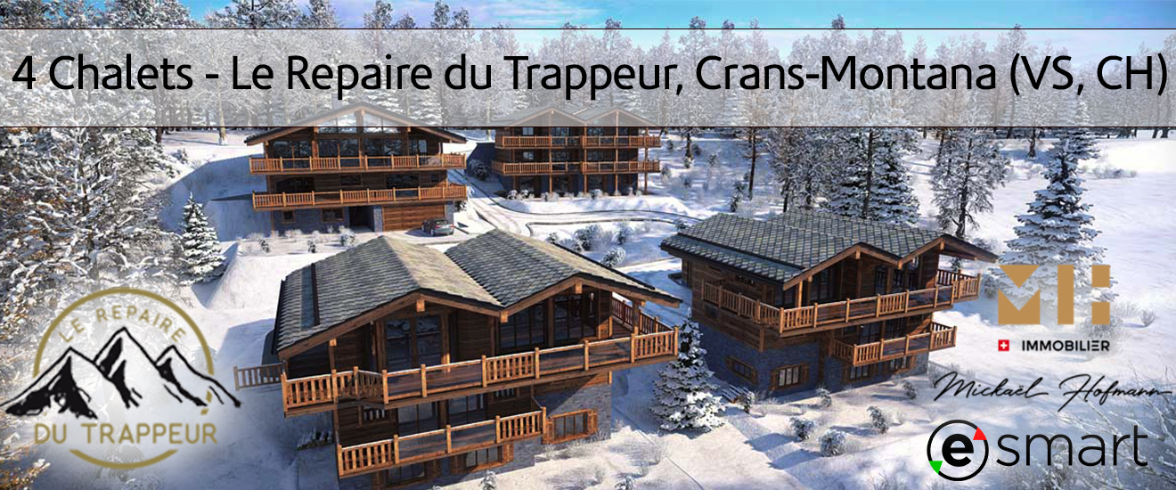 Ces chalets « Minergie » de haut standing construit à l’ancienne avec des matériaux et finitions de première qualité, sont situés dans le domaine « Le Repaire du Trappeur » à proximité immédiate du centre de Crans, dans un environnement bucolique de lac et de verdure et profitant d’un ensoleillement maximum et d’une vue panoramique.