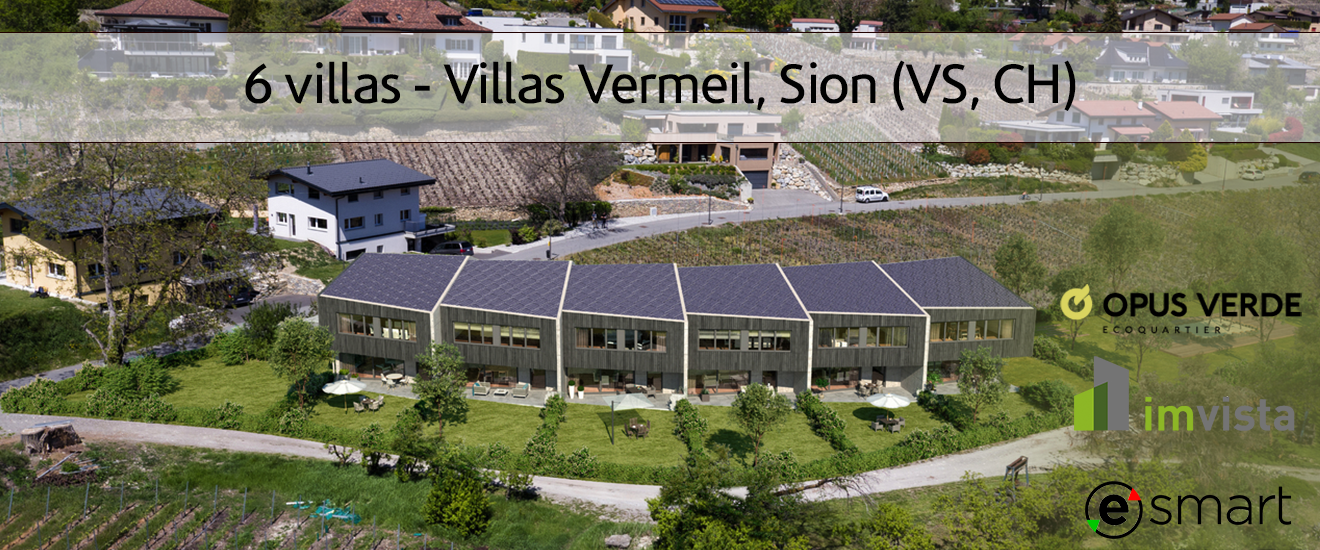eSMART participe à l’écoquartier OPUS VERDE et équipe les 6 villas mitoyennes que composent les Villas Vermeil. Ces 6 villas disposent de superbes terrasses orientées sud-ouest ainsi que de surfaces vertes, l’aile sud du quartier se détache par une vue incroyable sur la plaine du Rhône. Elles sont vendues avec 2 places de parc chacune. Le lotissement propose également de nombreuses places 2 roues (vélo et moto) et visiteurs.