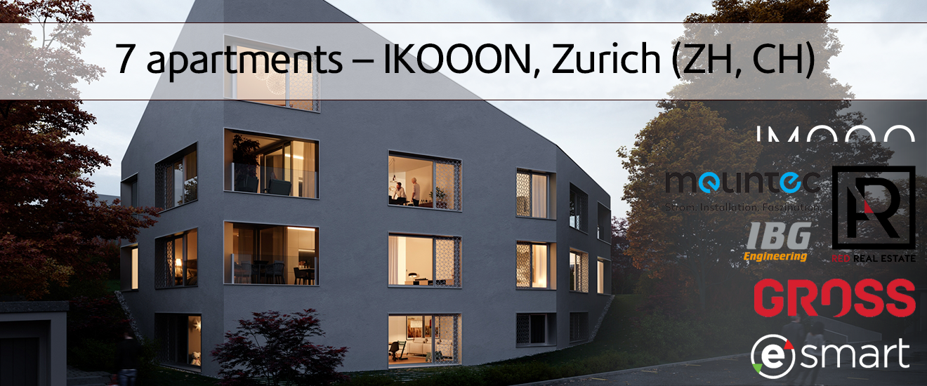 IKOOON est en cours de construction dans un quartier résidentiel calme à la périphérie Est de Zurich. Un bâtiment unique qui se compose de sept appartements avec beaucoup de lumière, de grandes fenêtres et des pièces hautes. Une architecture particulièrement intéressante qui allie design et durabilité.