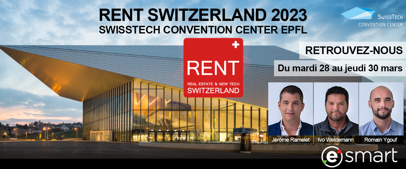 Le Directeur Commercial : Jérôme Ramelet ainsi que Romain Ygouf et Ivo Weidemann, sales managers au sein d’eSMART, vous attendent au RENT SWITZERLAND 2023, l’événement de référence pour les professionnels de l’économie immobilière. La 4ème édition du RENT SWITZERLAND 2023 prendra à nouveau place au SwissTech Convention Center de l’EPFL du mardi 28 au jeudi 30 mars prochain.